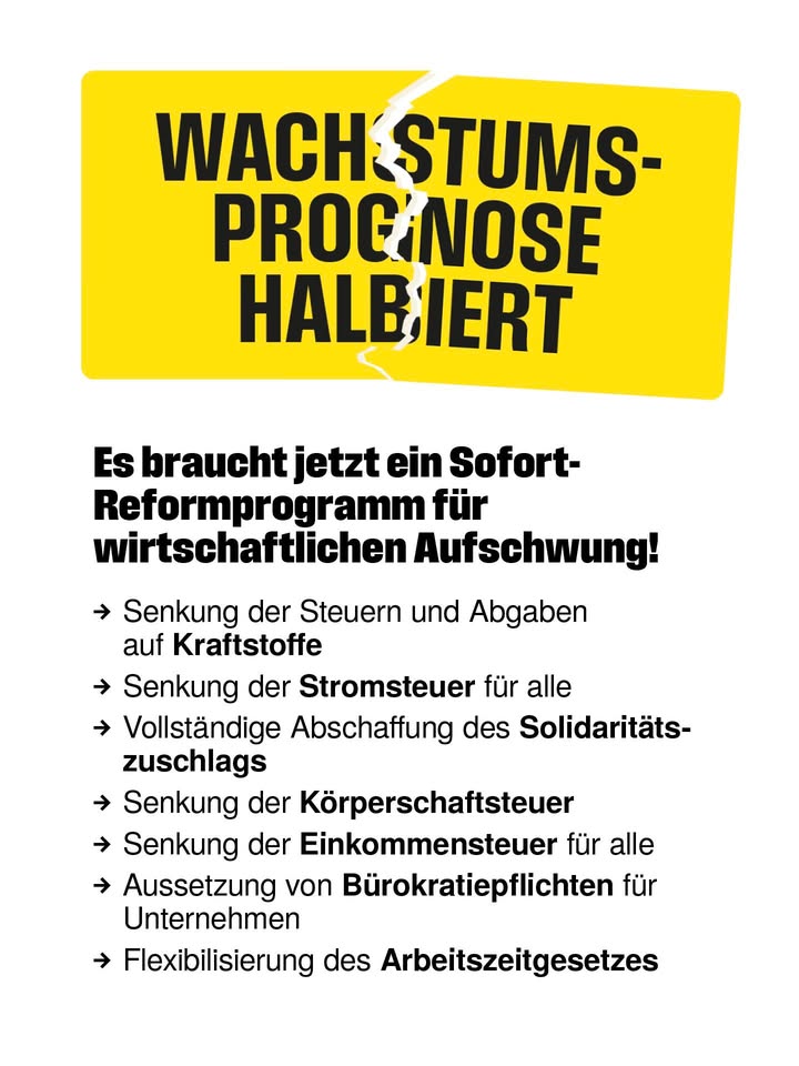 Immer mehr Arbeitsplätze gehen in Deutschland verloren. Wir sind das einzige Industrieland, dessen Wirtschaft aktuell nicht wächst. Wir haben mutige Lösungen vorgelegt, die von beinahe allen Experten gelobt wurden. Doch diese waren mit der Ampel leider nicht umzusetzen. Einige haben noch nicht verstanden, dass Umverteilung das Problem nicht lösen wird. Wir wollen an die Wurzeln des Problems und setzen uns für eine Wirtschaftswende ein!
